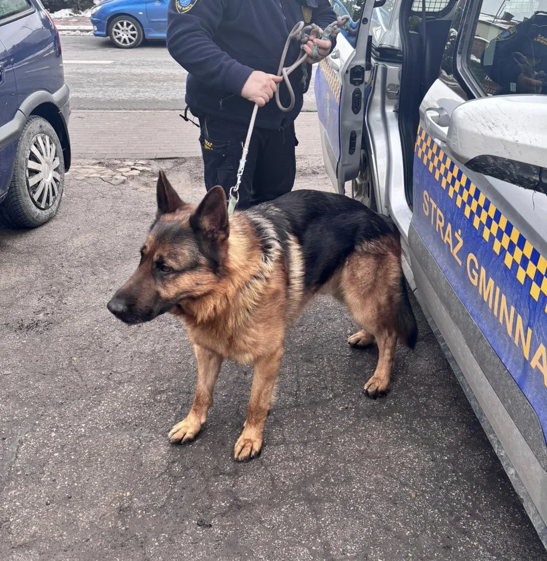 W dniu 14.01.2025r po godzinie 12-tej w jednej z kamer monitoringu gminnego znajdującej się w Koczargach Starych zauważono błąkającego się psa w typie owczarka niemieckiego. Patrol Straży skierowano w w/w miejsce. Pies nie posiadał obroży ani chipa. Zwierzę zostało odłowione i przekazane weterynarzowi z Leszna.